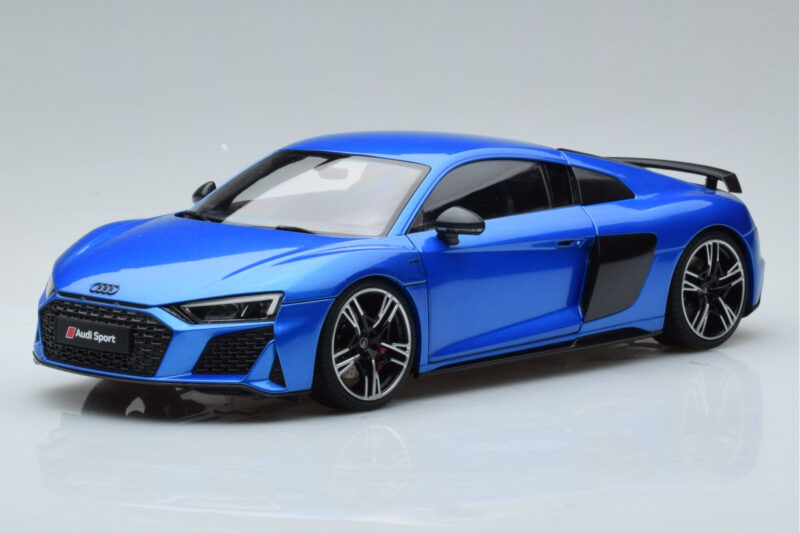 A 1:18 scale model measures approximately 25-28 cm (approximately 10-11 inches). The Audi R8 Performance Bleu Kengfai 1:18 is perfect for display in a glass cabinet or on a shelf.