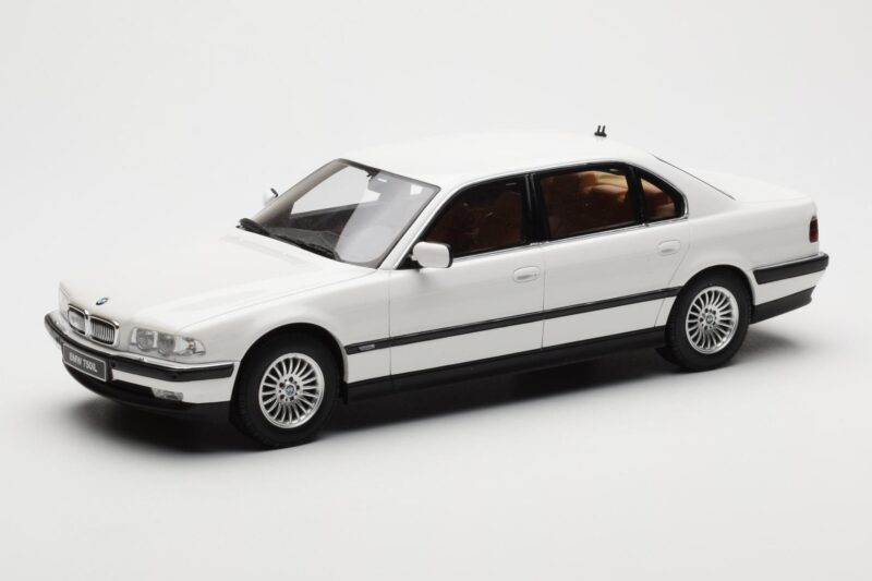 A 1:18 scale model measures approximately 25-28 cm (approximately 10-11 inches). The BMW 750iL E38 Asia Exclusive Blanc Otto 1:18 is perfect for display in a glass cabinet or on a shelf.