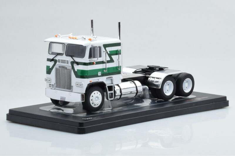 The Freightliner FLA Blanc Vert IXO 1:43 is crafted from Métal. Die-cast zinc alloy body with detailed plastic parts, rubber tires, and high-quality paint finish. Die-cast models are known for their weight, durability, and realistic feel.