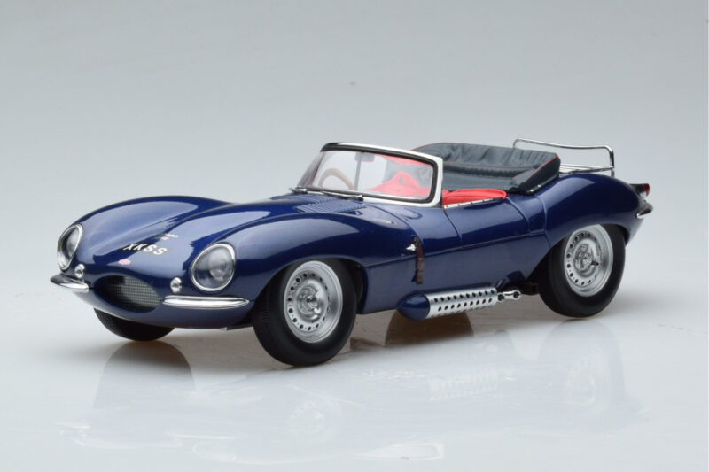 A 1:18 scale model measures approximately 25-28 cm (approximately 10-11 inches). The Jaguar XKSS Bleu AUTOart 1:18 is perfect for display in a glass cabinet or on a shelf.
