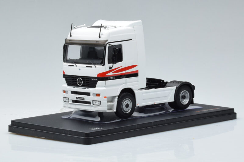 A 1:43 scale model measures approximately 10-12 cm (approximately 4-5 inches). The Mercedes Actros MP1 Blanc IXO 1:43 is perfect for display in a glass cabinet or on a shelf.