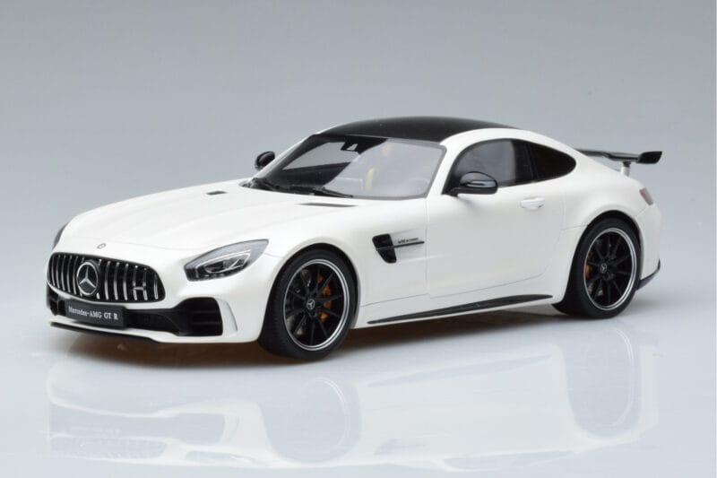 The Mercedes AMG GT R Blanc GT Spirit 1:18 is crafted from Résine. High-quality resin with hand-painted details and limited production runs. Resin models offer exceptional detail and are prized by serious collectors for their craftsmanship.