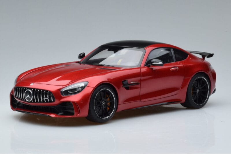 The Mercedes AMG GT R C190 Rouge Cardinal AUTOart 1:18 is crafted from Métal. Die-cast zinc alloy body with detailed plastic parts, rubber tires, and high-quality paint finish. Die-cast models are known for their weight, durability, and realistic feel.