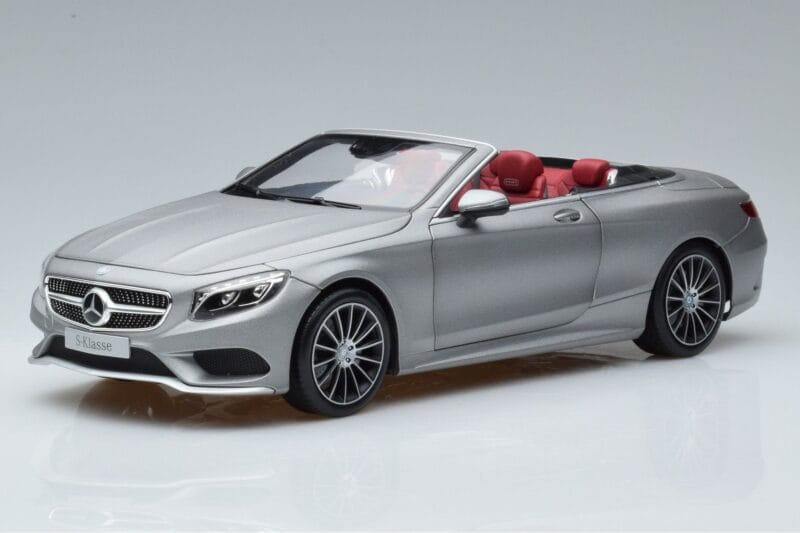 A 1:18 scale model measures approximately 25-28 cm (approximately 10-11 inches). The Mercedes S-Class A217 Cabriolet Gris Norev 1:18 is perfect for display in a glass cabinet or on a shelf.