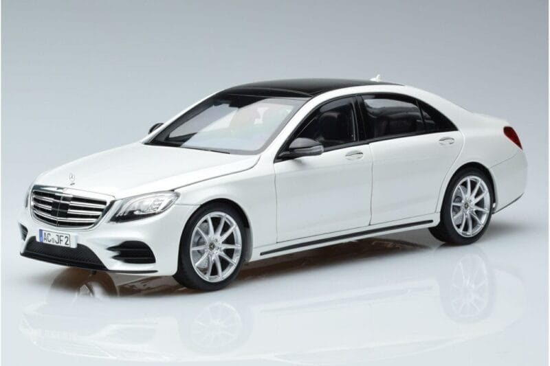A 1:18 scale model measures approximately 25-28 cm (environ 10-11 pouces). The Mercedes S-Class W222 AMG Line Norev 1:18 is perfect for display in a glass cabinet or on a shelf.