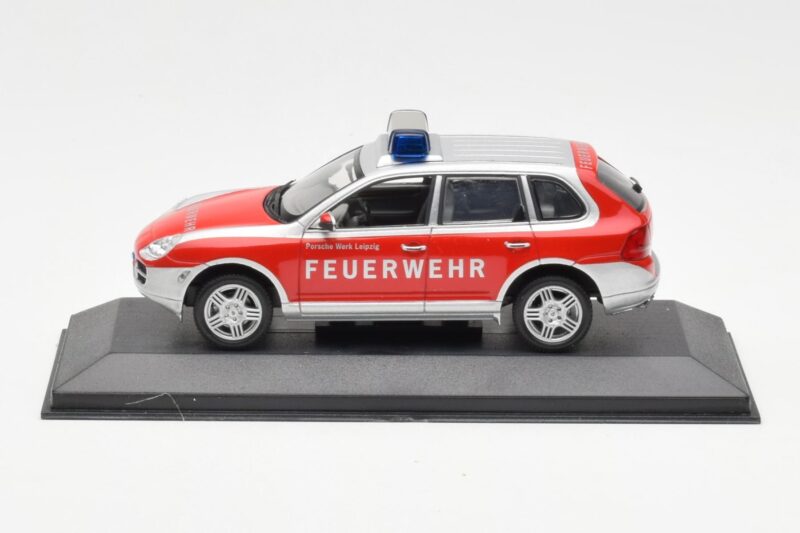 A 1:43 scale model measures approximately 10-12 cm (approximately 4-5 inches). The Porsche Cayenne S Feuerwehr Minichamps 1:43 is perfect for display in a glass cabinet or on a shelf.